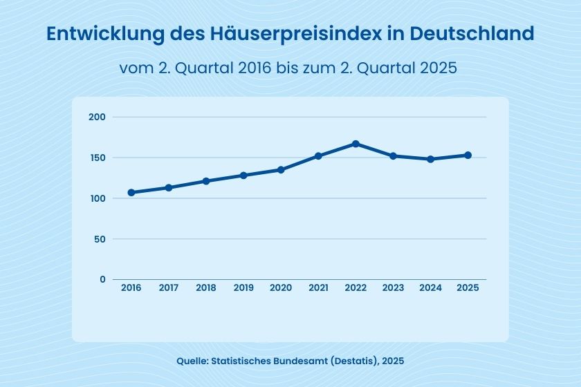 Nach zwei Jahren deutlicher Preisrückgänge zeichnet sich seit dem vierten Quartal 2024 wieder eine Trendwende am deutschen Immobilienmarkt ab. Die zuvor sinkenden Immobilienpreise steigen wieder leicht. Auch 2025 sind die Immobilienpreise bundesweit leicht gestiegen. Laut der aktuellen Daten des Statistischen Bundesamtes setzte sich der Aufwärtstrend auch im zweiten Quartal des Jahres fort. Sie zeigen: Bauen und Kaufen sind 2025 erneut etwas teurer geworden. Der Baupreisindex für den Neubau von Wohn- und Nichtwohngebäuden (in konventioneller Bauart, inklusive Umsatzsteuer) stieg im dritten Quartal 2025 gegenüber dem Vorjahreszeitraum um 3,1 Prozent bei Wohngebäuden und um 3,3 Prozent bei Bürogebäuden und Betriebsgebäuden. Parallel dazu legten auch die Preise für Wohnimmobilien zu: Laut Häuserpreisindex waren sie im zweiten Quartal 2025 im Schnitt 3,2 Prozent höher als ein Jahr zuvor. Damit erhöhten sich die Wohnimmobilienpreise bereits das dritte Quartal in Folge, nachdem sie zuvor seit Ende 2022 kontinuierlich rückläufig gewesen waren.